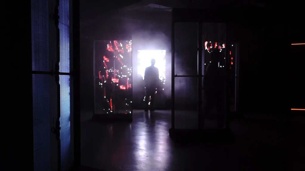 Character RECLAIM WONDER is an immersive installation featuring sixteen interconnected transparent portals that respond to visitor interaction, inviting reflection on humanity’s relationship with digital technology and our collective journey toward an uncertain future. Personnel Spatial Media Lab CollectiveAgency LiganovaLocation Alte Münze, BerlinArt Direction and Project Management Stefan KrausCreative Coding Josef Pelz, Mickey van OlstSpatial Audio Timo … Continue reading 2023 – RECLAIM WONDER